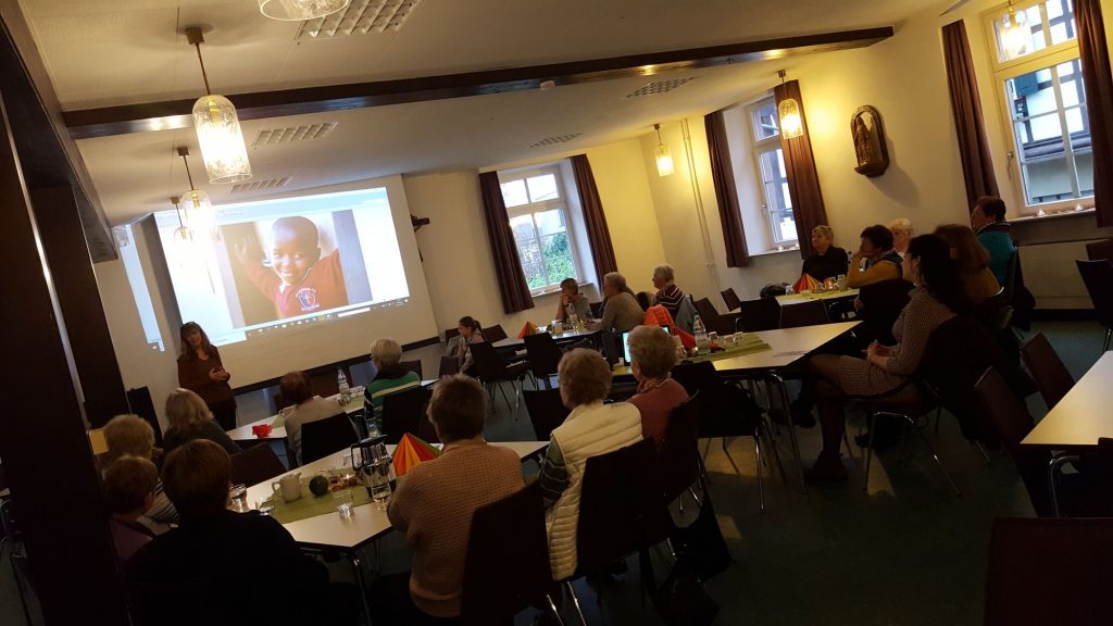 Die Tradition, am Novemberkaffee für ein Projekt zu spenden, wurde auch an diesem Sonntag wieder in die Tat umgesetzt. Wir hatten Frau Annette Lennartz vom Verein „Voices for Africa“ zu uns in das Marienhaus eingeladen. Frau Lennartz hat uns, in einer wundervollen Power-Point Präsentation, das Dorf eSitjeni und das Projekt der Patenschaften nähergebracht. Zurzeit werden dort 350 Kinder von Paten unterstützt, d.h. sie können zur Schule gehen, bekommen eine warme Mahlzeit, können eine Ausbildung erlenen und vieles mehr.