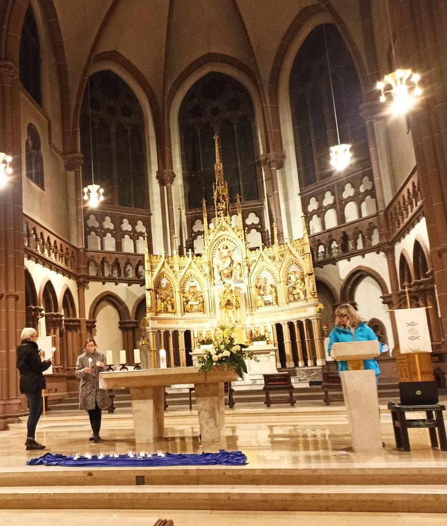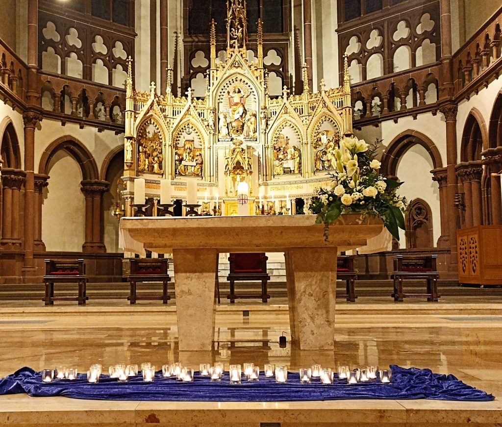 Eine Gedenkandacht zu Ehren ihrer Verstorbenen Mitgliedsfrauen für die Jahre Ende 2019/2020 und 2021 hatte der Katholische Frauenbund Heppenheim am Sonntag, den 21.11.21 in die Kirche St. Peter eingeladen. Abschiednehmen tut weh, Abschiednehmen braucht Zeit, Abschiednehmen braucht Zeichen und Formen, braucht Gespräche, Begegnungen und Umarmungen. Als dies war in dieser Zeit nicht oder nur sehr eingeschränkt möglich. An diesem Abend haben wir uns die Zeit genommen uns an jede einzelne Verstorbene namentlich zu erinnern uns von ihr zu verabschieden. Kleine Teelichter angezündet an der Kerze des Frauenbundes unseres Zweigvereines erinnert uns auch daran, dass Jesus lebt und somit auch unsere Verstorbenen.